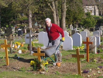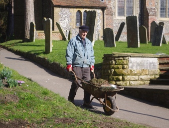 The Church employs a contractor to cut the grass and to remove non-compostable rubbish for nine months of the year, but all other regular tasks except the digging of graves are carried out all year round by volunteers from within the church community - the "Churchyard Team". Because they meet on Tuesdays, they are also referred to as the "Tuesday Team".