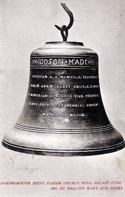 1664 Small bell cast by John Hodson. This became cracked in the past century and was stored in the porch until it was stolen in recent years. This was known as the "Tinker" bell.