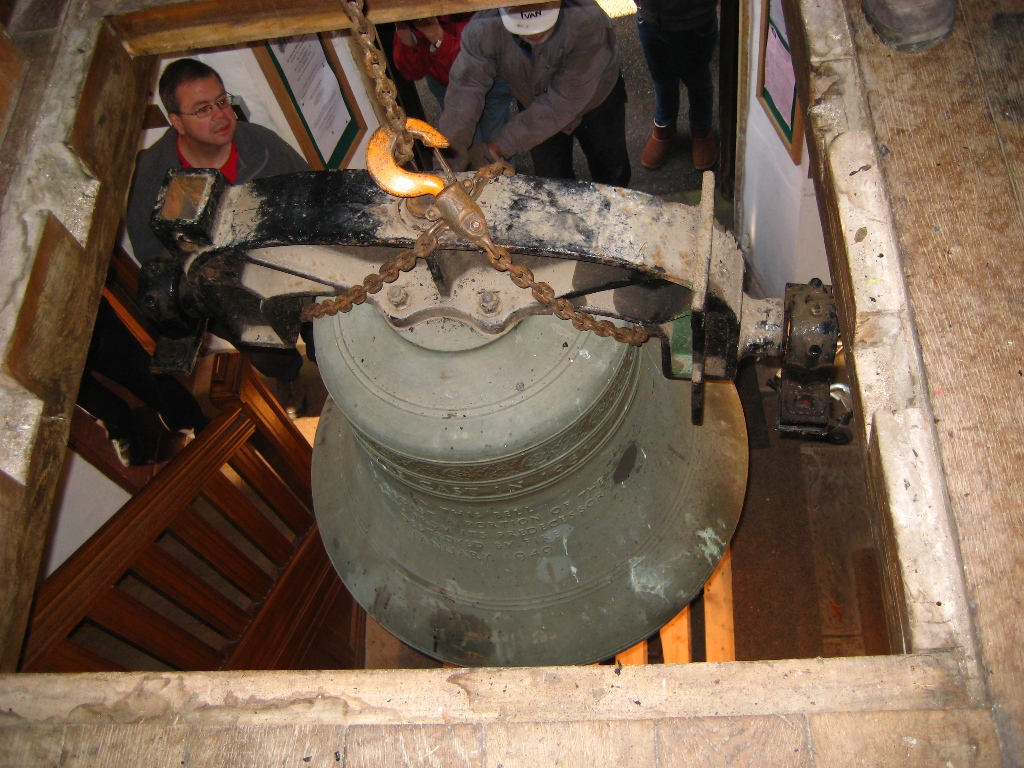The existing G&J bell was temporarily removed from the tower