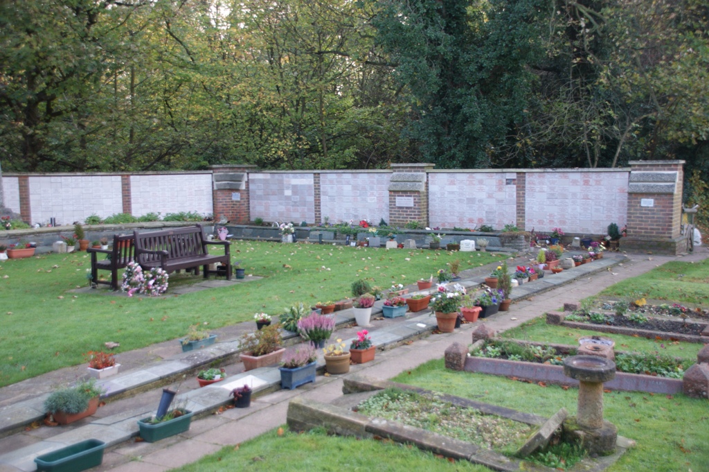 This garden was used for all new burials of ashes between 2012 and mid 2019. It is backed by a further new Wall of Remembrance, known as Phase 3.