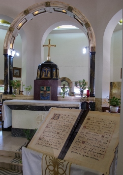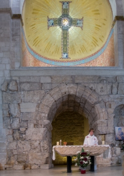 After lunch we walked to Mary’s Well, quite a long walk to the only freshwater spring in Nazareth. As our informative guide Sayeed said – trust men to site a village in a defensible position, never mind about the distance the women have to trudge to fetch fresh water. After this we visited The Basilica of the Annunciation over a first century cave where Mary is thought to have lived. Then on to Cana, the place of the first miracle at the wedding.